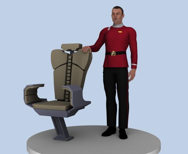 In my prior Miranda class bridge renders, the chairs were a placeholder, an early chair I did a long while back. Tonight I finished making the ridiculously complex chairs for Miranda class bridge. Yikes, they don't make it easy to make a simple chair.