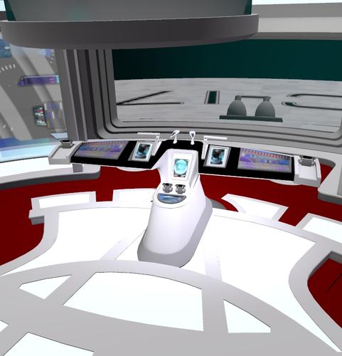 Here is a look outside the bridge, so you can see the front of the ship through the window. Textures are from a ship mod, I'll have new ones when done.