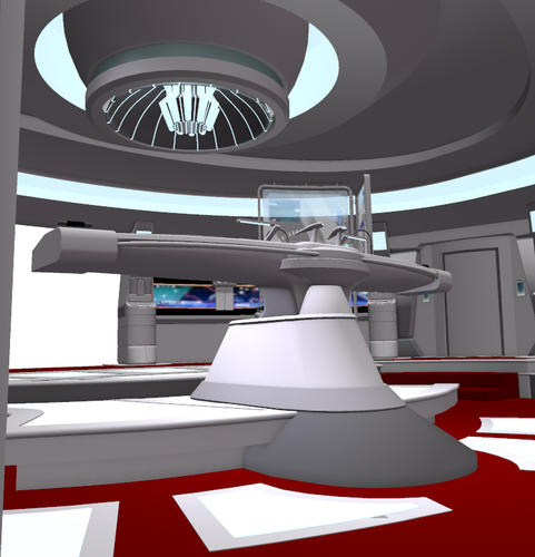In the film it appears sort of cramped in a way, I think due to the lens flares (which make it hard to see large portions), the fast cuts of the camera, and those partition screens which blot out some of the background to the sides of the main chair. I can get a better sense of scale now just by seeing it in your WIP renders. Now that I can see it clearly, it looks much more open than I'd thought. I can't wait to see it finished and rendered. Also would be interesting to see what it looks like in more traditional Trek bridge color schemes.