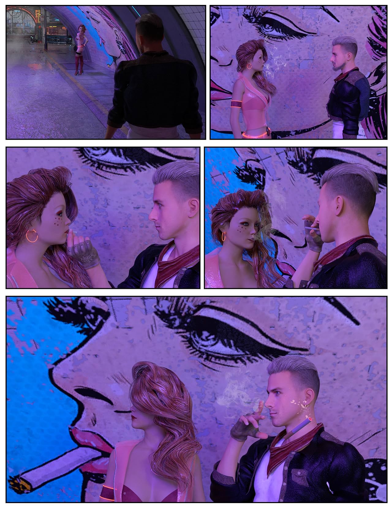 BTW, Having this scene in front of this mural is genius. The juxtaposition between the traditional comic book looking art of the mural with the 3D art of your comic is fantastic. And, of course, the theme is just perfect.