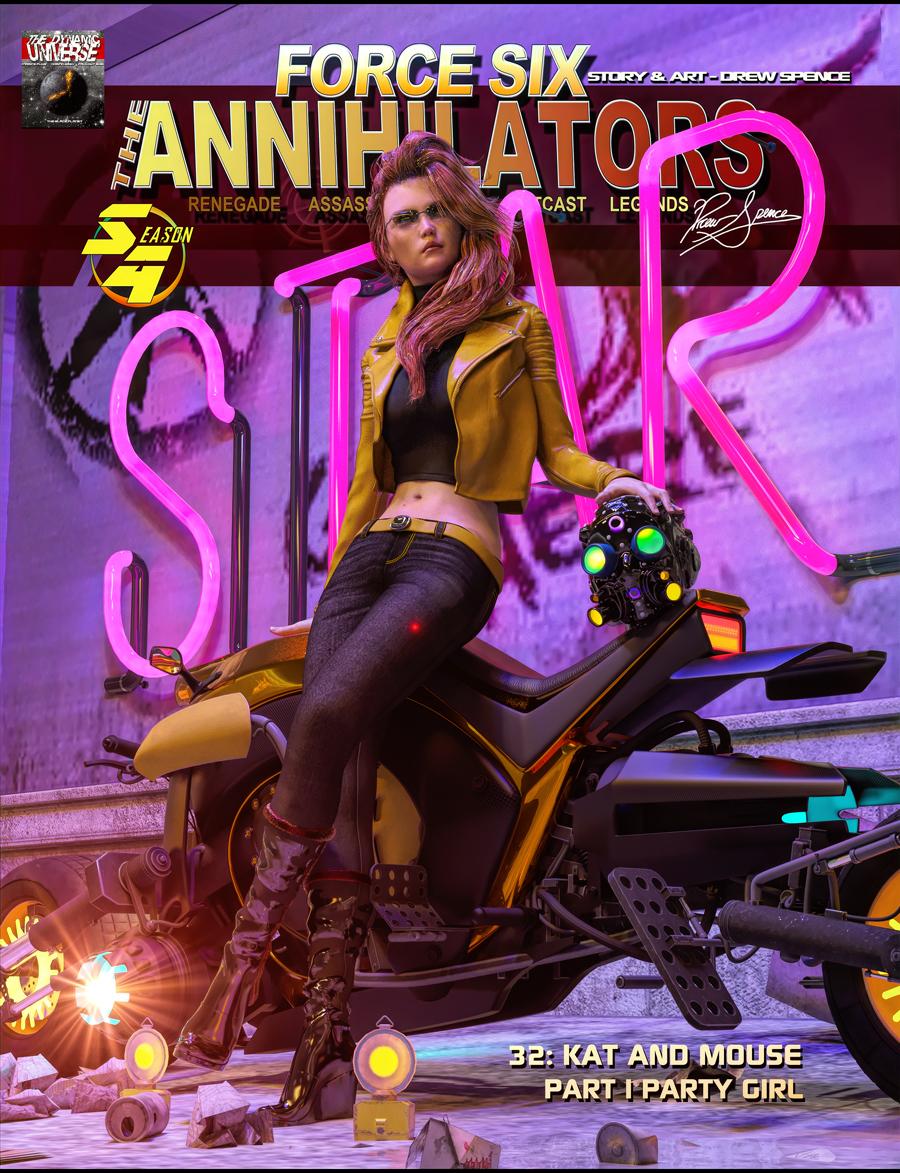 Force Six agent LunStar-G was sent under cover as Nina Vanetta Noir- a journalist, to cover a story and uncover a plot device. It’s a decisive and dashing dab of divisive deceit when our darling dame is left dangling with a dangerous dilemma. Dare to read on dear reader. The Kat and Mouse caper concludes in this episode. Draft and dialogue by Drew Spence.
