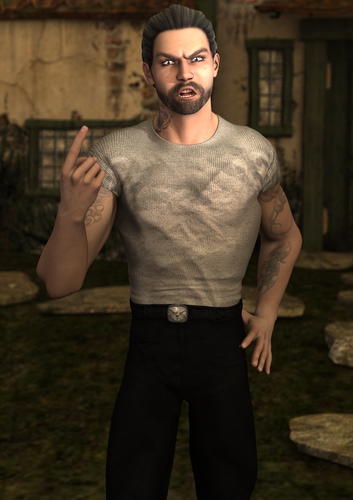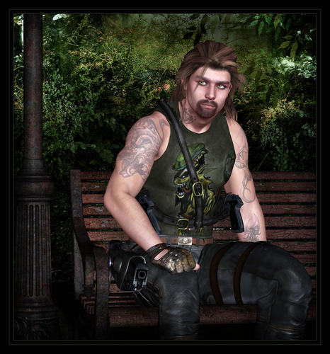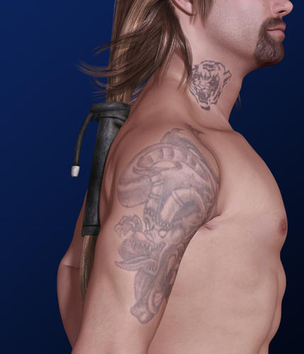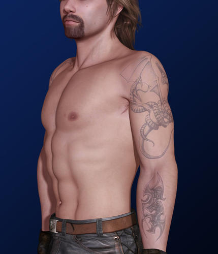Oh cool!! His eyes didn't translate well...they really don't into Studio, but with my extremely limited knowledge of that program, it's hard to figure out how to do things. I'd work with it if I could get it to stop crashing on my computer. But when it crashes every 20 minutes, it's hard to get any kind of work done. If you can, could you possibly post a render of one of his tattoos showing for LeatherGryphon? Just so he can see how they look from Studio? I posted the ones from Poser already...