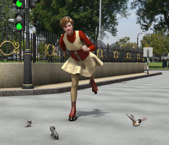 I shaded the corset and skates to match each other and coordinate with the red sweater.