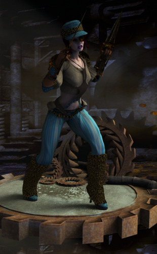 If I understand the rules correctly, this is an entry for both the Clothing Kit Bash and the Prop Kit Bash, with all of the clothing using Non Cloth Shaders. (And almost all of the building surfaces using, very technically, cloth shaders, for that matter.)
