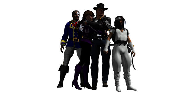 The characters are all Genesis figures, and all use shaders and seemless shader textures to varying degrees.