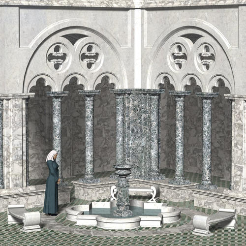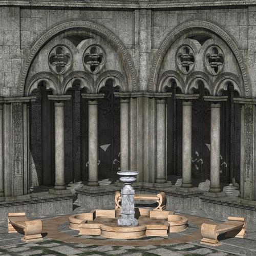 The Fountain (by Umblefugly) - fountain, basin, steps (sunken here) and benches