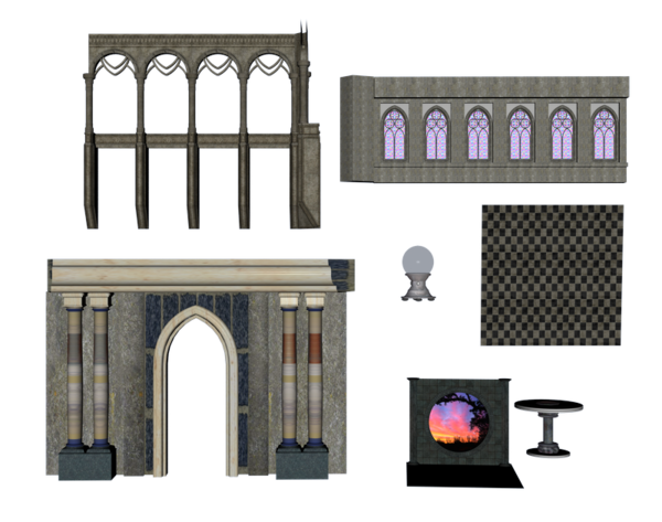 All surfaces retextured by self-modified shaders, using free images from CGTextures (marble, tiles, etc) as diffuse maps