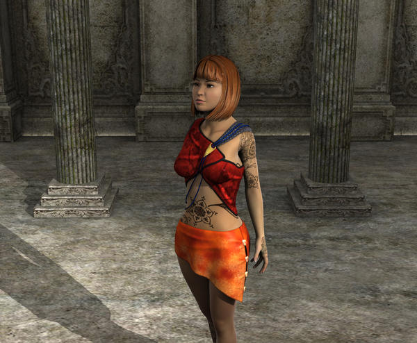 Finally picked her up today, so I thought I'd share my first render with you. This is my NVIATWAS, except she's not naked and she doesn't have a sword. I think the Quickwind set looks pretty good on her, and gives me a way to show off her henna tattoos without sticking her in a bikini!