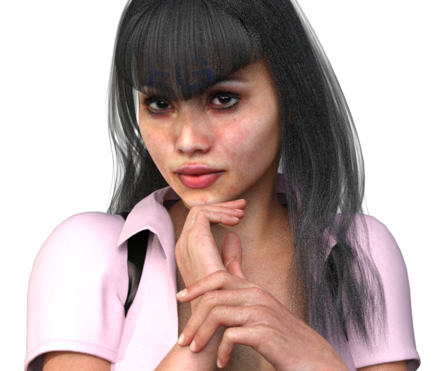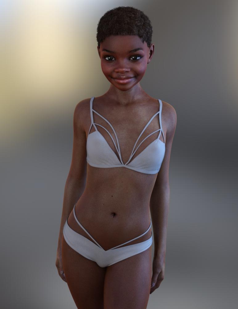 FG created teen ebony girl. This was done with a very low res photo (400px) that was scaled up to 1200px. You can tell a bit on the zoom. But, it's still very usable. The skin texture improved a lot after adding NGS2 Dark Skin shaders.