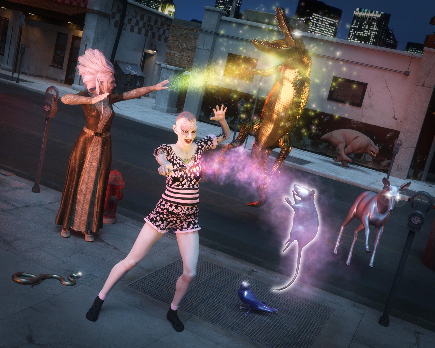 Thanks,Gopherus. Alas, that is the only trick the sisters know and sometimes the animals transmute back. I wonder is barbult will notice that one of the escaped Hamlin rats got zapped when it was passing through town...