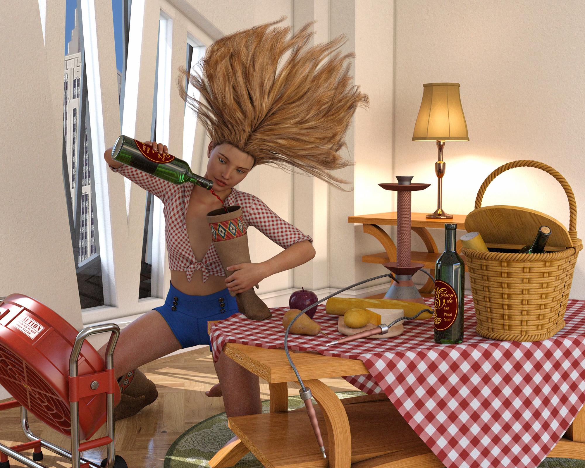 Moonshine's never looked so good! I like the way you edited the menu board to be more appropriate to the image theme. Those musicians look like they could really be playing. Great choice of outfits and textures, too. Another great one, Luci. For some reason it makes me think of Poofy Pants. Maybe the gaucho pants or maybe because Totte and I were just reminiscing about Poofy Pants a few days ago.