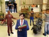 Againsts his wife Noura's protests, Omar Halabi emmigrated with his family to a country far away and opened a motorcycle shop. In a town called Cairo what could go wrong? A few things could and did. In spite of the wide range of bikes offered, from economical mopeds to the Yamaki Enforcer with built-in guns, the locals only wanted the latter, for hunting. Many complaints were lodged about too-high prices for the high-end choppers and Halabi's Cycles was soon cited for numerous code violations. After some research the family moved again taking their business, minus the Enforcer, to California.