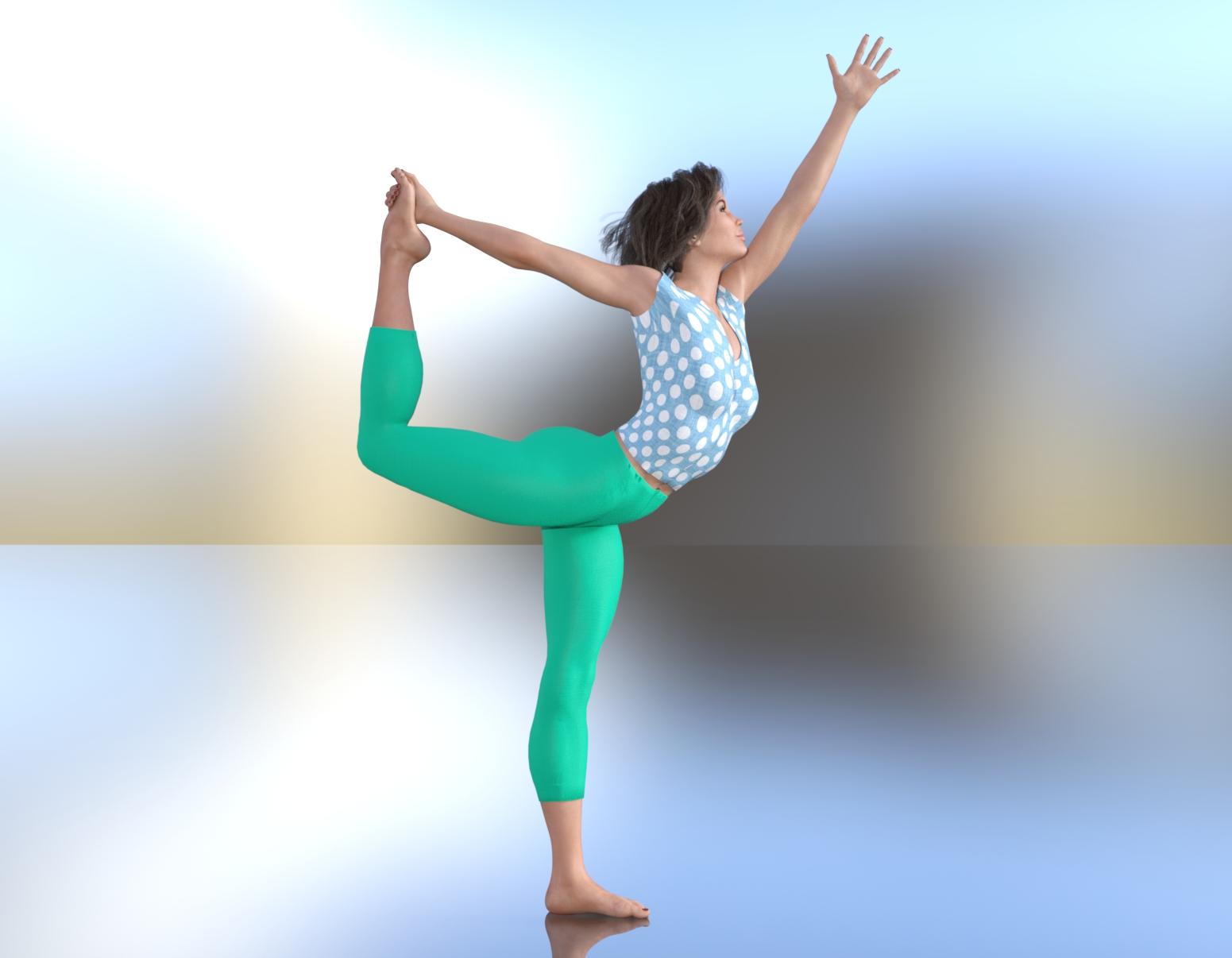 Putting in her clothing that fits snugly definitely helps to see the lines of her body and something someone performing yoga tends to wear anyway. Nicely done.