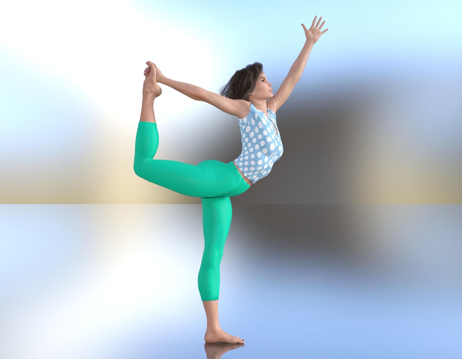 Putting in her clothing that fits snugly definitely helps to see the lines of her body and something someone performing yoga tends to wear anyway.  Nicely done.