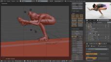 Just a quick update. My blender rig does auto smoothing of the spine between the hips and chest. It wasn't doing a decent job on the abdomen bones with a pose as bent as this. So I added a couple drivers to give a little better granular control. I'm happier. Now I just have to figure out what I did to her left hand. Don't stare at it, that's rude. :)