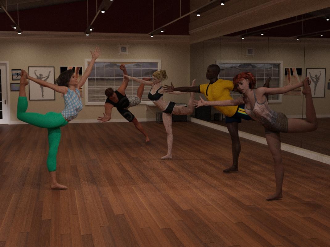 Very nice.  The guy in the back really adds to your image.  I did notice, though, that all of the other yoga participants seem to be floating off the floor just a bit.  I'm not sure if that comes from your saved pose or not.  One thing to try and always remember as a last step before saving a pose that should be on the floor is to: