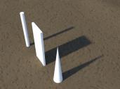 Below are two render tests with the same set of primitives I did using the Iray Sun/Sky (each object is 5' tall). Notice that while the shadows do soften with the height of the objects the effect is not as much as with the default light.