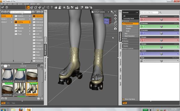 The skates for 50s Carhop and the boot for the Onyx for Genesis Female outfit have the same issue. Once the skate or boot is fitted to Genesis, you need to hide the foot and move only the shin; otherwise those shoes don't even come close to working properly. In the case of the skates, at least, the argument can reasonably be made that the foot and ankle really couldn't move much in that type of shoe. The argument makes no sense with the Onyx boot or 50s Casual shoes, but as I say, we weren't able to persuade DAZ support of our case.