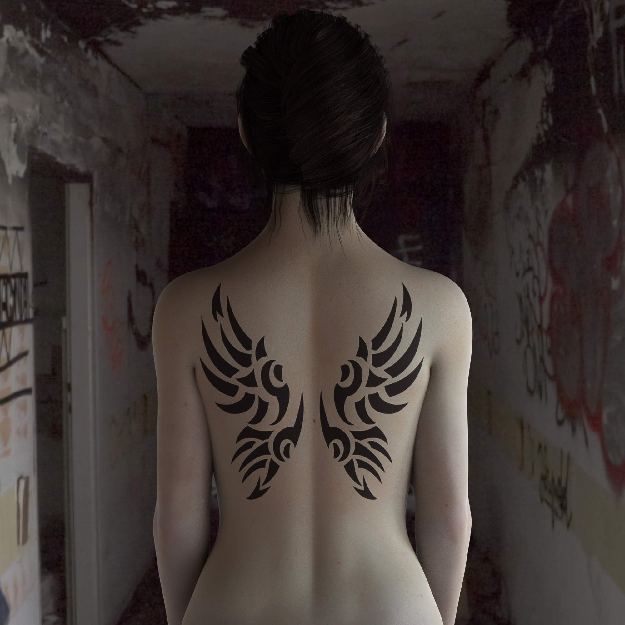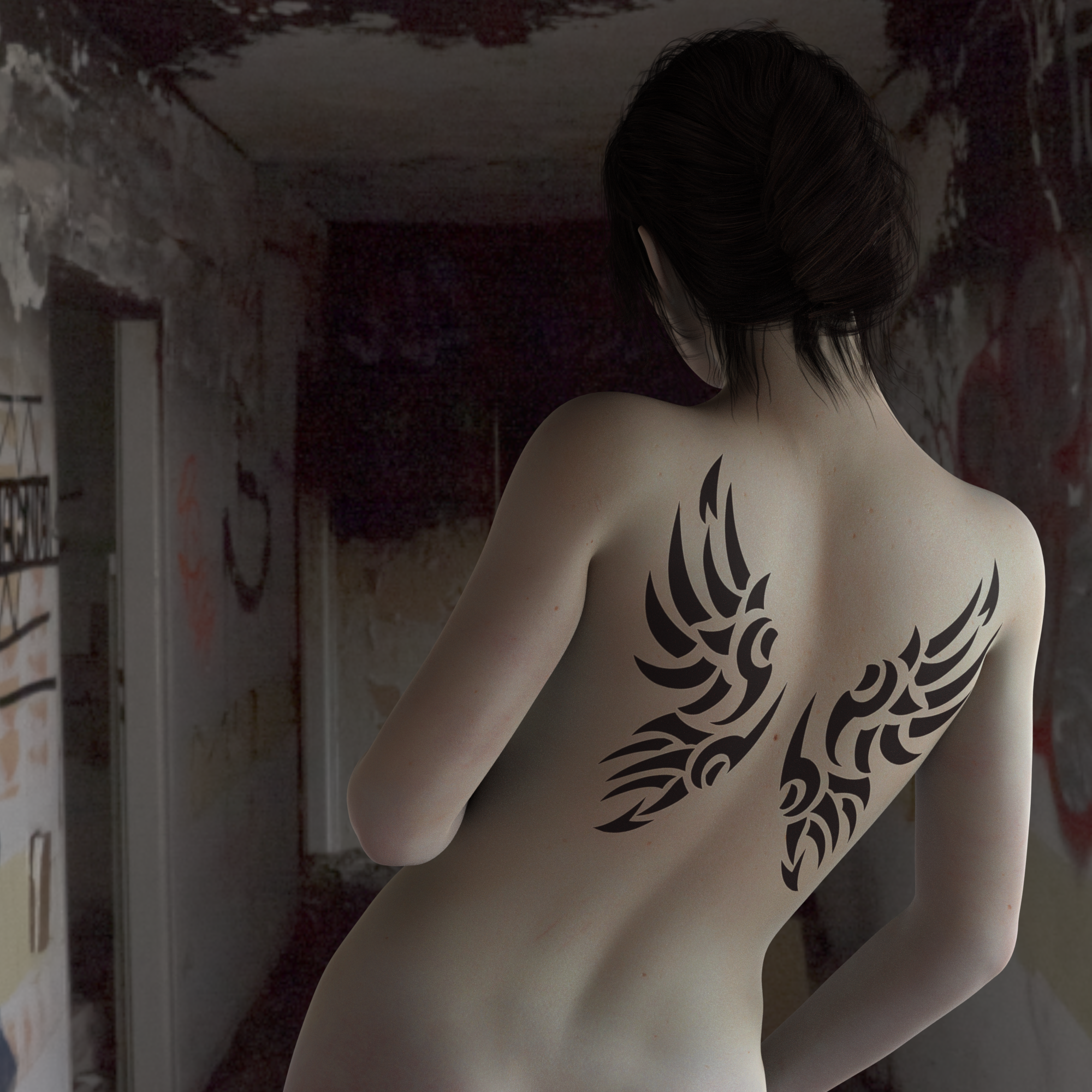 Your tattoo looks pretty nice. Is that a decal? If she posed, would the tattoo move with the pose? I'm still a bit unclear on the projection stuff, even though I've done a few decals in the past.
