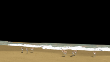 Next a made some Sandpipers with a sphere and spline modeler for the legs,  No bones used..just moved the legs... worked good for a test -- little road runners. ;; they really scoot..