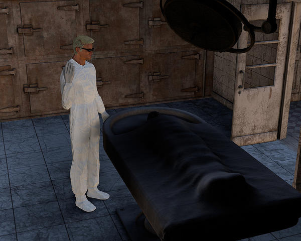 The best picture IMHO, depending on the present, however - is this one using Jack's Morgue. (maybe a bit too much ambience on the surgical gown....). I think I used LAMH too. For those who don't know, it's Albert and an early 'test-subject' of the T-virus lies on the slab. (hoping I'm not rehashing something I've posted earlier). Time for Chris to enter the scene, methinks!