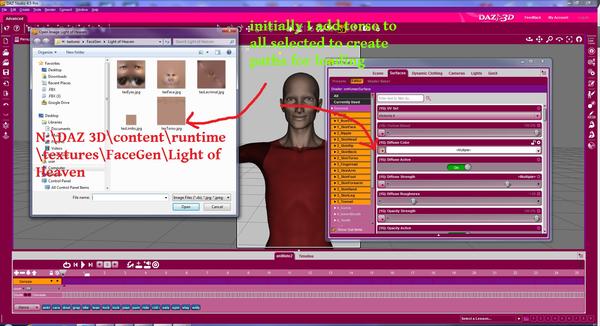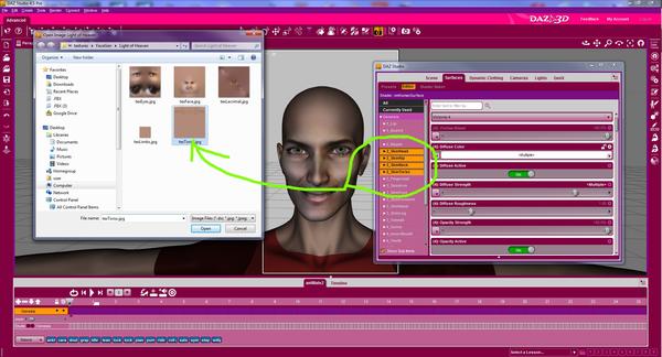 to add textures, need to browse and add in diffuse, uses V4 uv mapping so load a V4 based material preset first for inner mouth etc