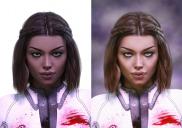 Thanks, I'm leaving it the dress. I mostly just wanted to do a face paintover and the dress was pretty blown out and already had a sort of painted on look. I did drop a shadow under the collar though because it was painted on the texture and looked a little flat. The technique I was trying is sort of a modification to the smudge technique, only instead of smudging you blur sections of the skin using the lasso tool. Then go back and do highlights and shadows, which are done on their own layers using 50% grey layers set to overlay. It's faster and there is less "movement" of things because your not using the smudge tool.