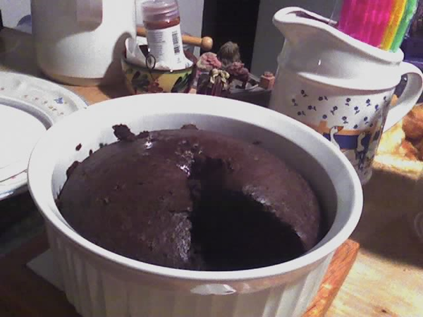 made my 1st chocolate cake from scratch. woot. there are no eggs in the recipe. weird, eh?