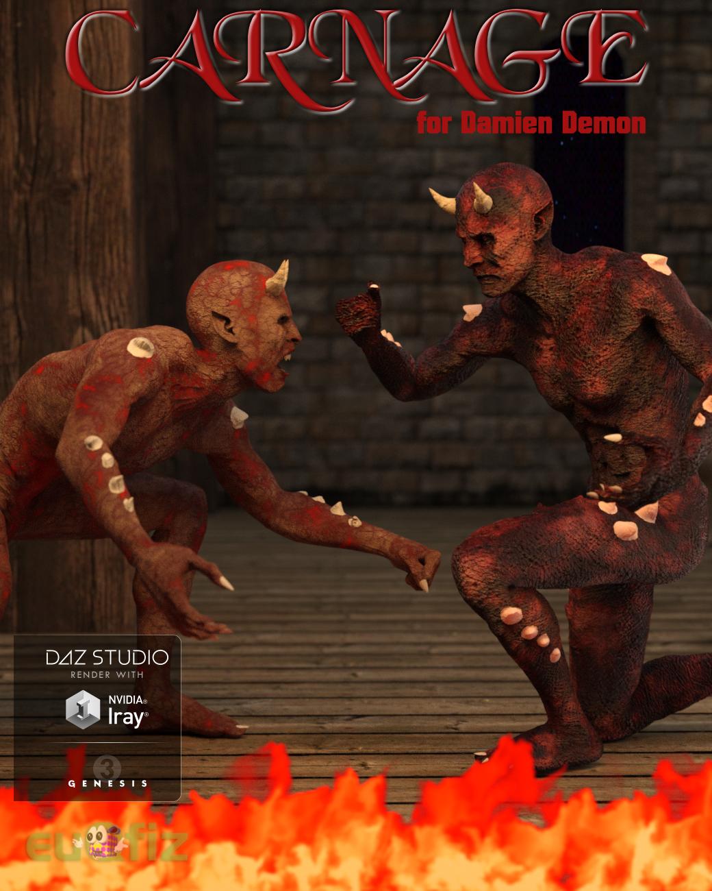 Its time to skin some male demon. Grab Damien Demon Iray skin now http://www.daz3d.com/iray-carnage-skin-for-damien-demon
