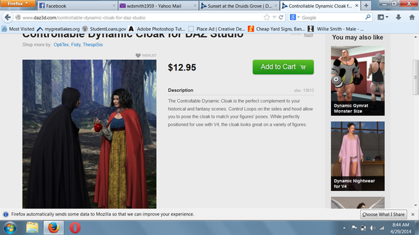 It is this one: Controllable Dynamic Cloak by Optitex. I am using DAZ 4.6 and cannot get it to work at all.
