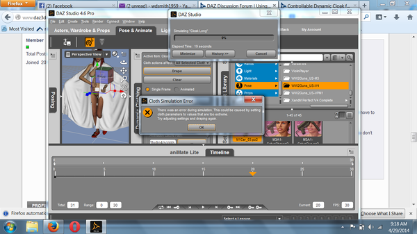 10: In the Dynamic Clothing Control Pane turn on Animated Drape and Drape to Frame 20 and make sure you don't Collide with things you don't need to collide with.