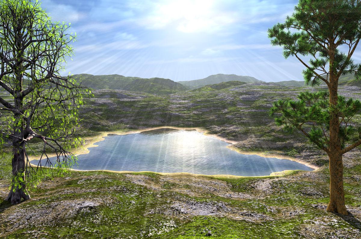Here is my third and last entry. The terrain is also from the Grand Mountains set, the materials from the High Resolution Terrain sets 2 and 3 and the sun rays from the Inclement weather set.