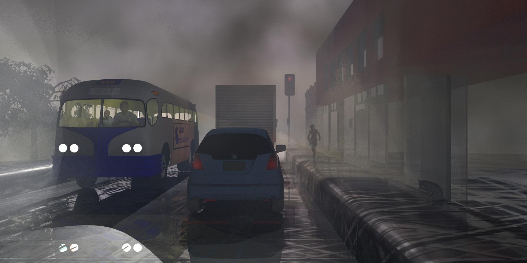 Here's my last entry. Car's are all freebies. Posing in DAZ Studio. I used that building to the right and the traffic light before. Title: Dangerous weather for driving.