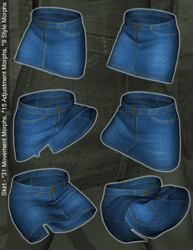 *Waist conforming Skirt, Thighs controlled with 31 movment morphs and L/R handles for tweaking.