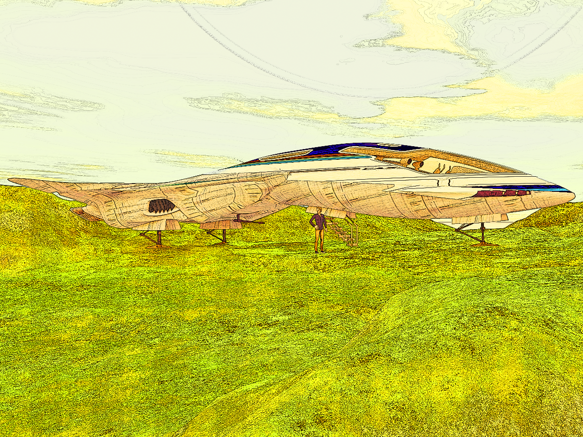 Hello Phil, I don't know about the Van Gogh comparison, but I did position the ship so that it occupied the boundary between the land and the sky in the picture, so maybe that threw you at first glance.