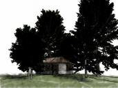 I did a whole bunch of tests today to see what the various settings do - most of them were just arrangements of primitives, but here's one that came out pretty decent.  Just pure NPR, no postwork. If I were going to take the time to redo this, I think I would render out the trees separately with different settings.