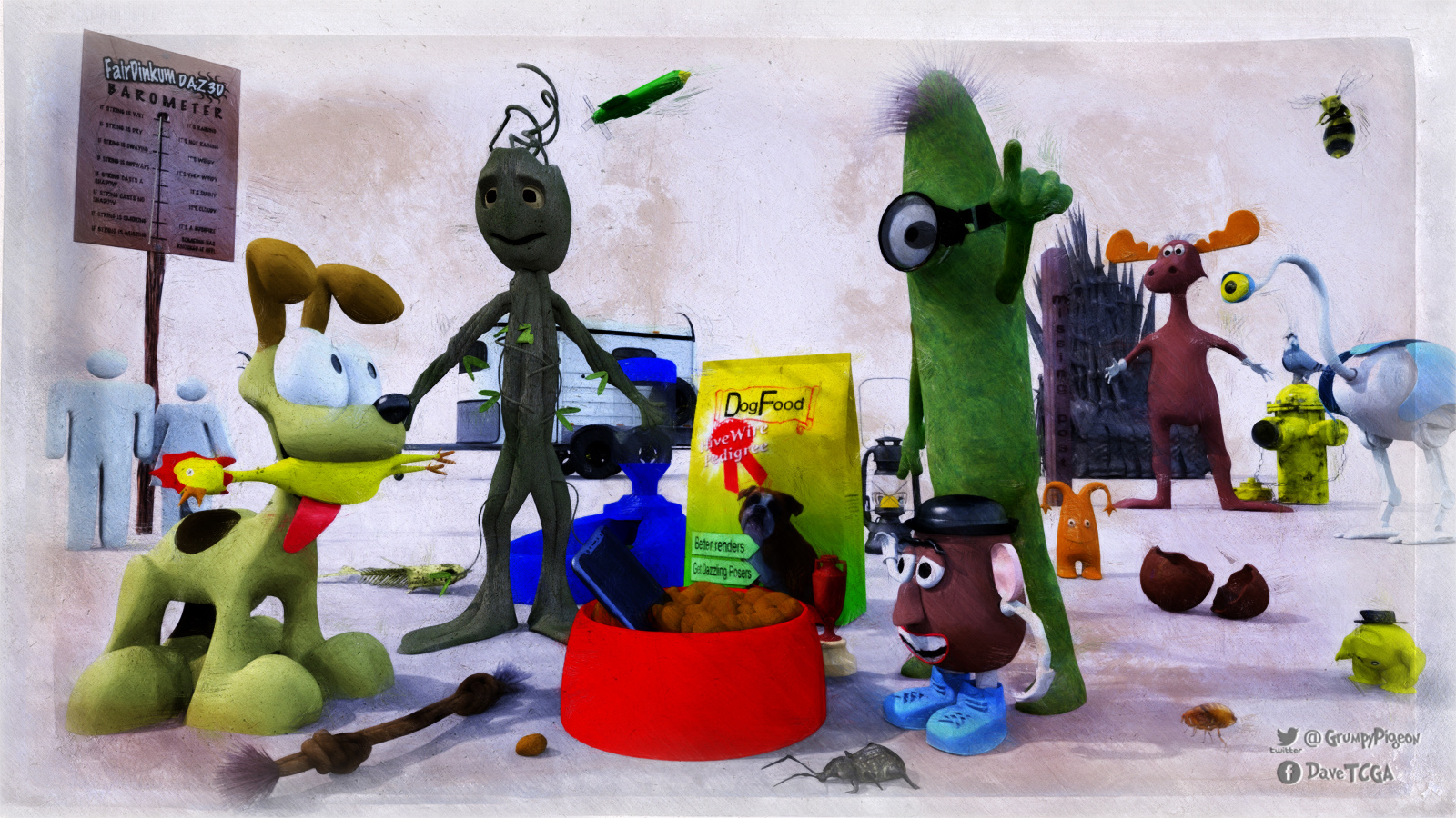 I think you've seen this already. It was an unsuccessful attempt, except that it gave the wonderful experience of playing with the tools - so I look forward to my next attempt at this. The plan would be to use brush strokes on the textures of all 3D elements and then also use some artistic filters, generators, etc, to further the effect. Of course still just an experimental thought.