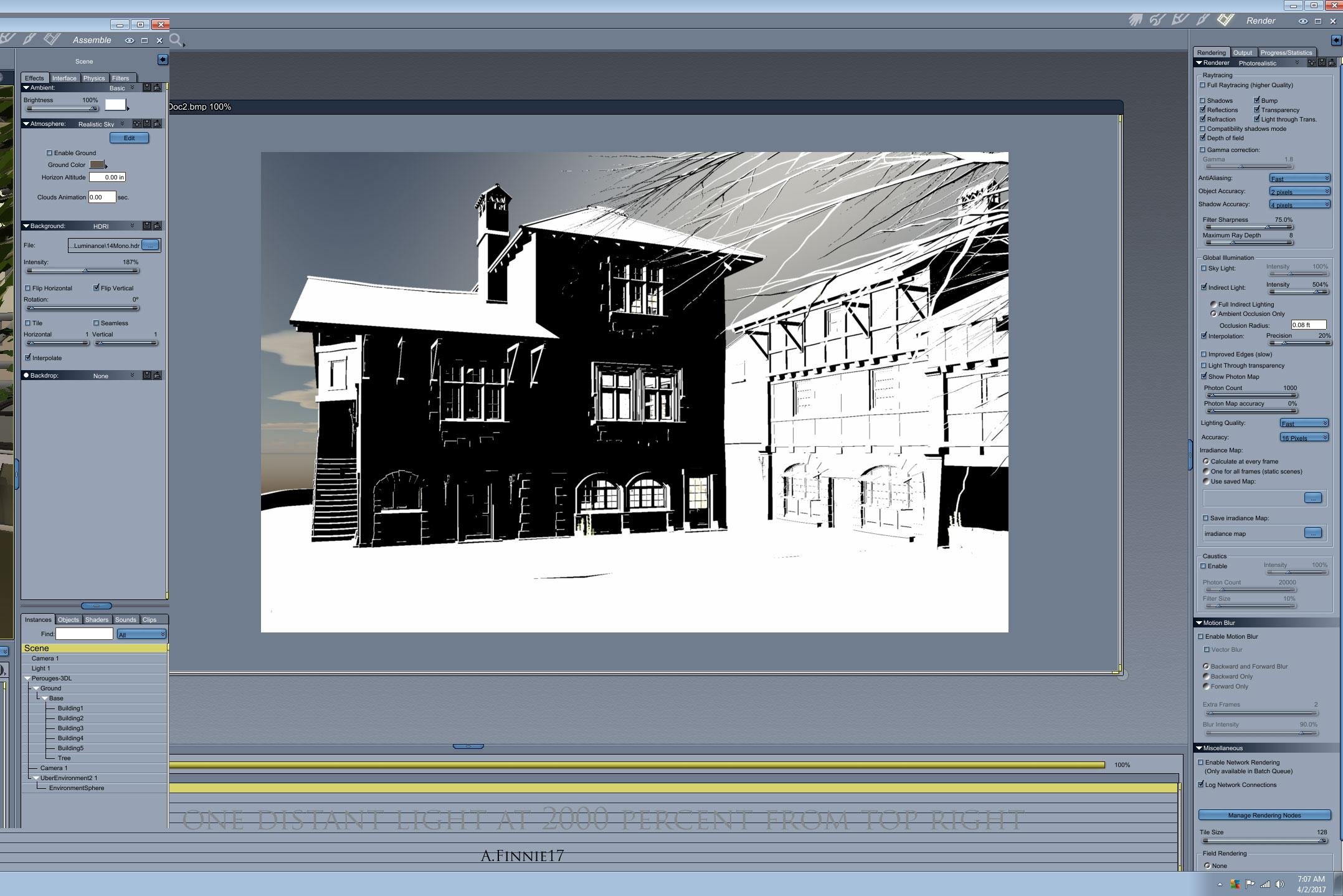 Ive started doing screen captures and saving them so I remember what seetings I have been using :) the still life is toon pro (commercial product) teamed up with Toon1part33 (Carrara's inbuilt render emngine)