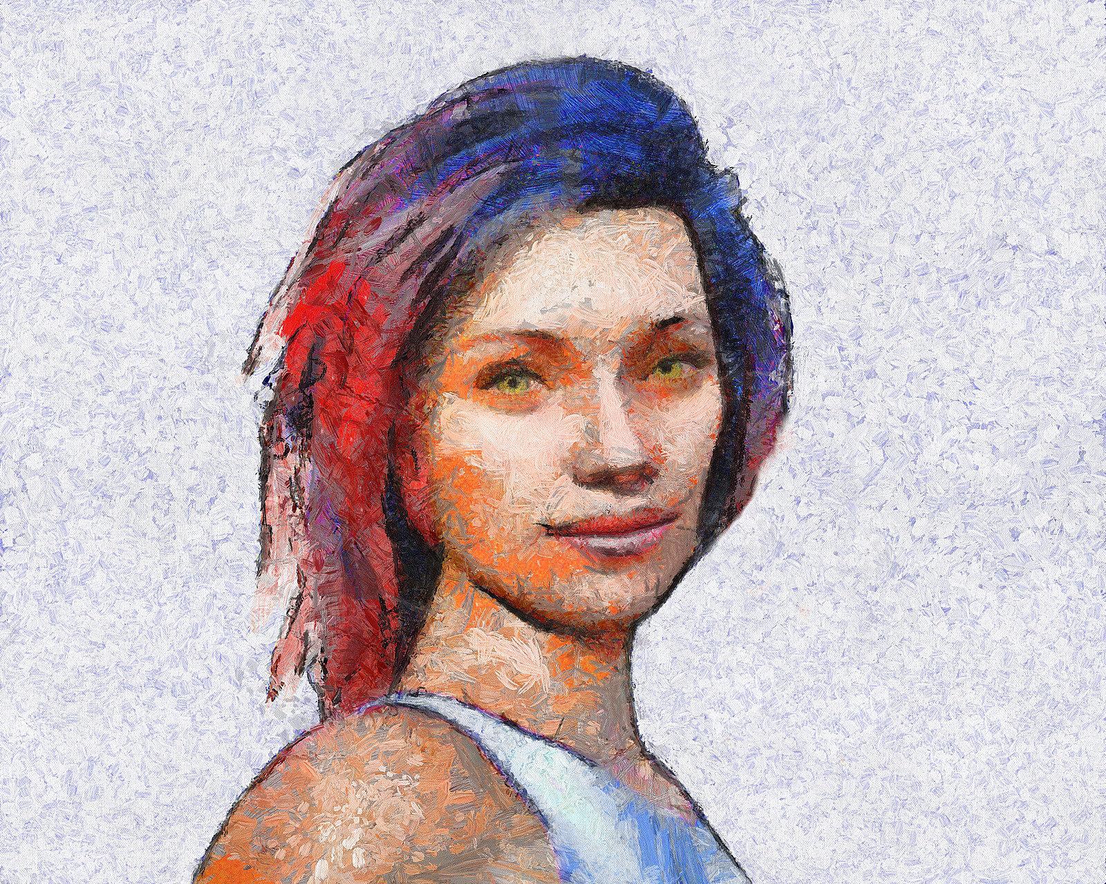 Here is one portrait I just quickly put together and then used Cezanne preset in Dynamic Auto Painter with some tweaking - used more soft reveal on the face itself than the surrounding in the Retouch panel. The exact steps were: during Dry reveal, I paused with right mouse, then moved the dry reveal strength slider to maybe 20% or so, so mostly the rough underpaint showed, then after details were finished, went to retouch panel and with soft brush put the Soft Reveal back to face. Adjusted the outline to a thin pencil and that's mostly it.