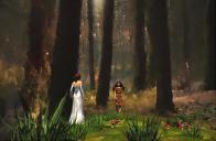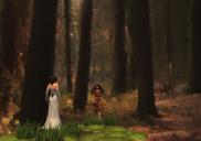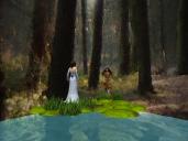 I'm attaching the original picture from the woods nearby and a couple of attempts at making a scene with it rendered in Carrara. What I've done breaks the rule of composition where a main object shouldn't be dead centre but it's only a WIP complete with badly-fitted clothing. For some reason which I haven't taxed my brain with, the image inside the cylinder has reversed itself.