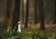 I put in bits and pieces of scenery from various items in my libraries and made some of the moss slightly transparent to bridge the foreground items and the background.
