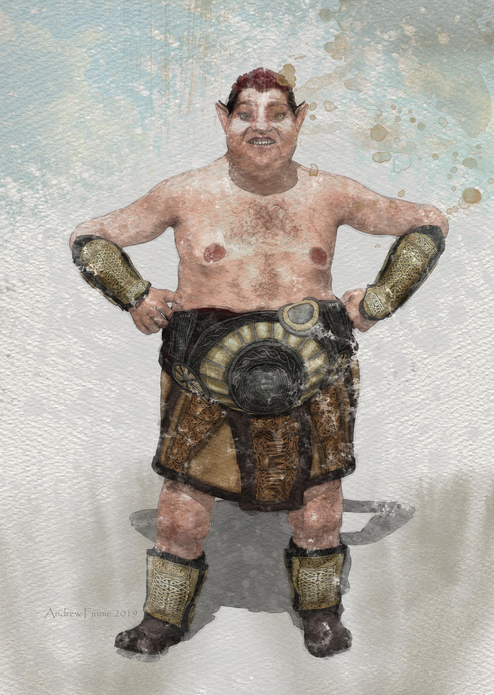 Backstory: Well, this is Bruce The Wizard's brother, Cedric the Sous-Wizard (note his Sous-Wizard hat having only one round thingy on the top). Cedric is a lousy cook so, seven months ago, he was sent out to the family Dinosaur Zoo farm to look after the Giant Yellow Bellied Pseudopod's.