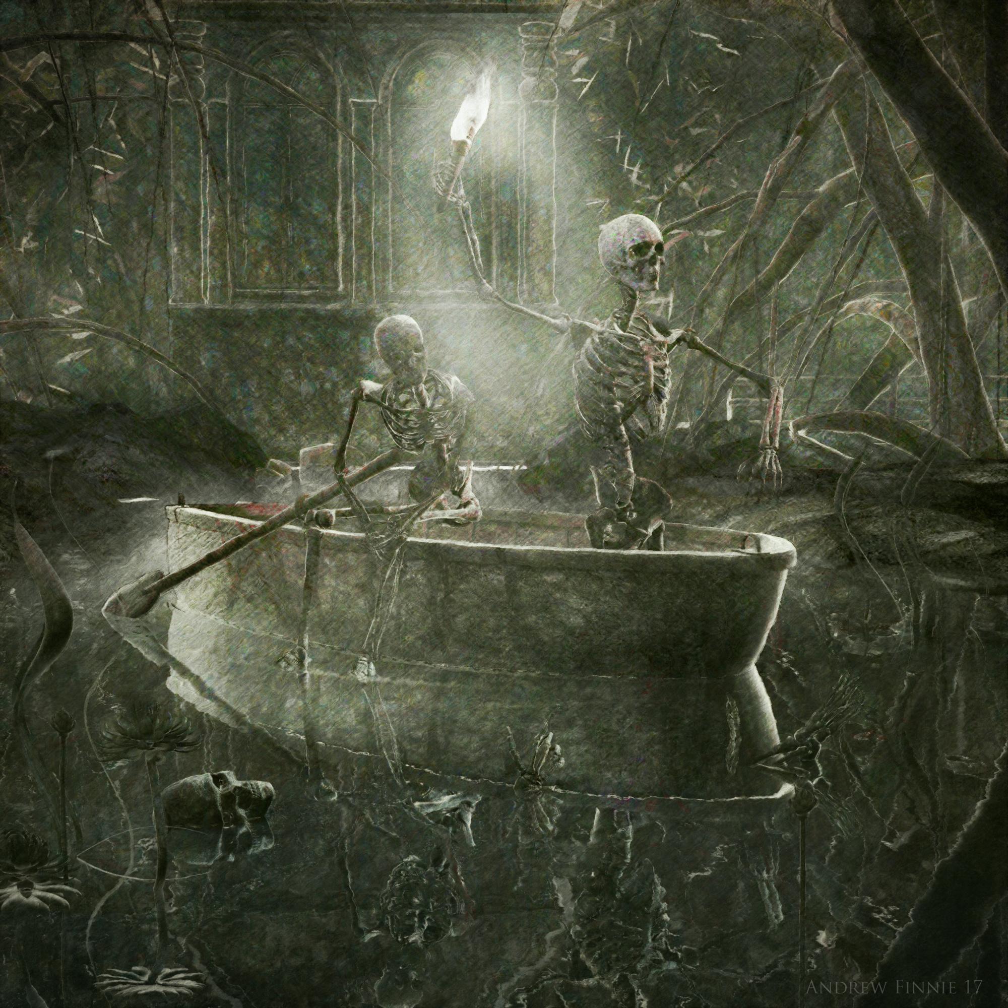 Thanks very much! :) Ah, the Plague theme? It's interesting how images are interpreted. To me they are just two skeletons going on a fishing trip (rods hidden below deck).