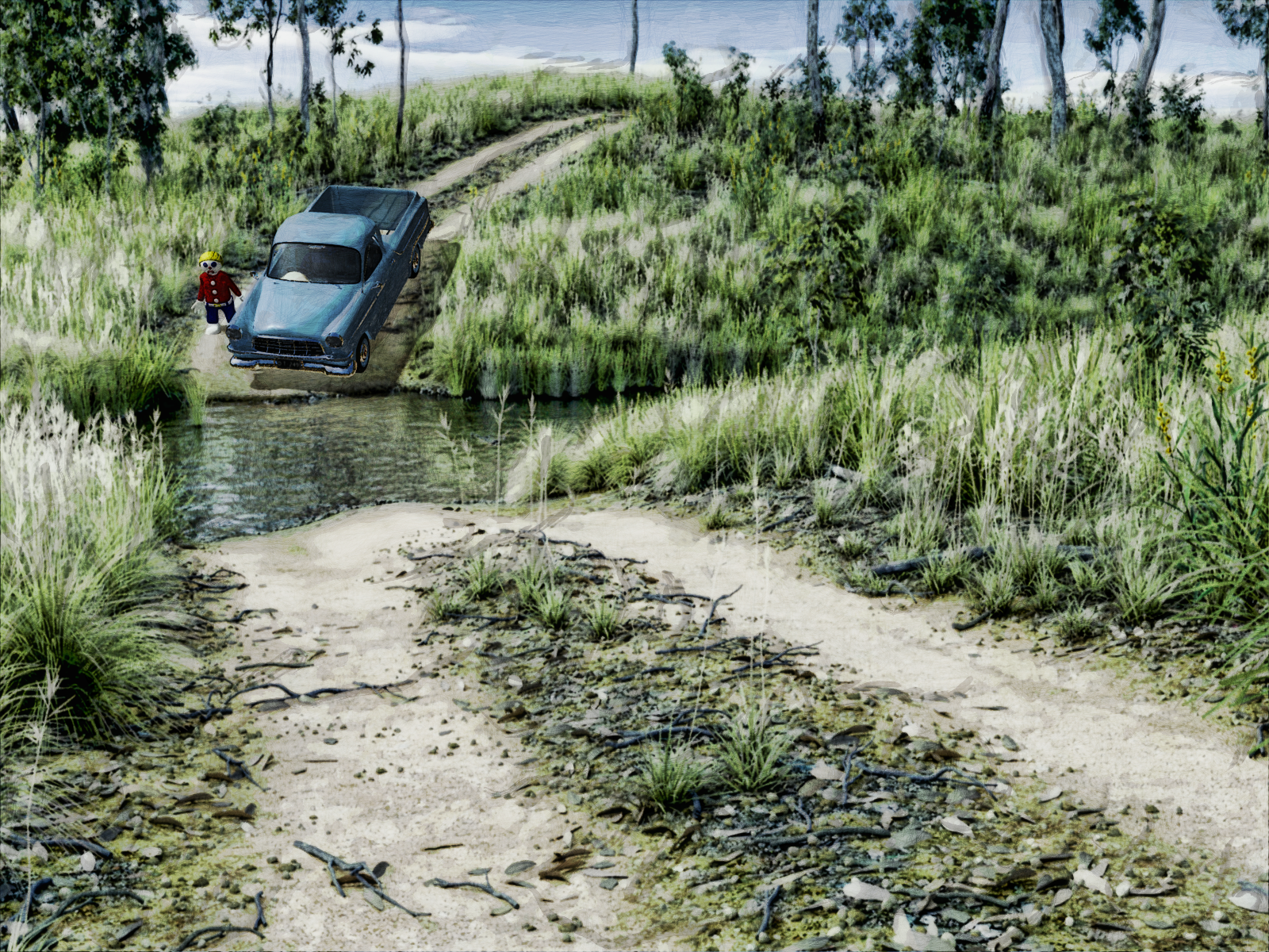 Playing with Aussie Ultra Scenery, loaded the render into Carrara as a background image.