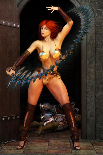 Thinking about muscular ladies last week I made a render using the freebie sword that came out. Again another women with more modest arms but big legs.