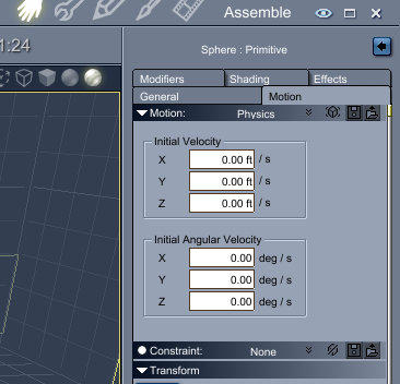 Physics objects can have an "Initial velocity" for X. Y, Z