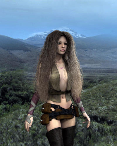 The image below is my main character, made using Victoria 4. The hair is Goldtassel's Angelina Hair with a few modifications. First of all, no feathers or headband. Well the hair only goes up to the headband - so I had to edit the mesh in ways that would bring those strands up to her scalp. Second, I animate more than anything I do. The product comes with a great selection of morphs - I love this hair product - but I wanted to add some custom movements of my own. Like when she's laying back on a hospital bed or jumping from great heights. Once I built a good assortment of additional movement morphs, I created three separate instances of the hair. She needs to have really long and full hair if she is to resemble my wife. Each new instance of the model gets fuller and longer and I changed the placement of many of the details while reversing some of the curls - so it didn't look like just three stacked hair products. I like the way it turned out.