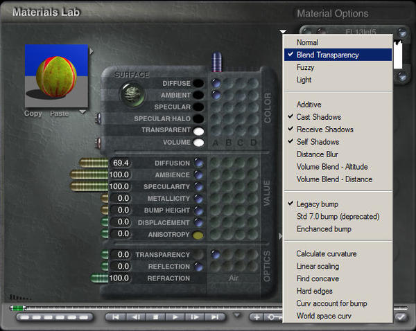 I'm sorry I do not have screen shots-that was on an old computer, with the XFrog samples. I don't know if they still have any. I'll check. Because on the rectangle the image is flat, I've used lights to bring out color. Try the billboards on spheres, shaping the spheres by squashing and stretching. Lots can be done, as long as the beads for Blend Transparency are set in the right channel. They have to be in the channel where the black and white silhouette is. Sometimes, as with hair, there are more than one. If it doesnt load you can go back with Material, through the image menu and find the file and import the material and masks that way. I do this with hair all the time.