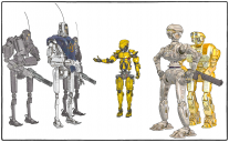 Field soldier with enclosed frame and bulkier body and sniper version with slender build but something super-top heavy on the shoulder....
