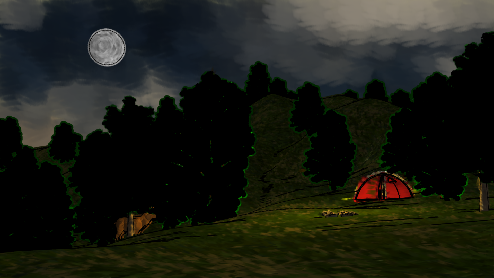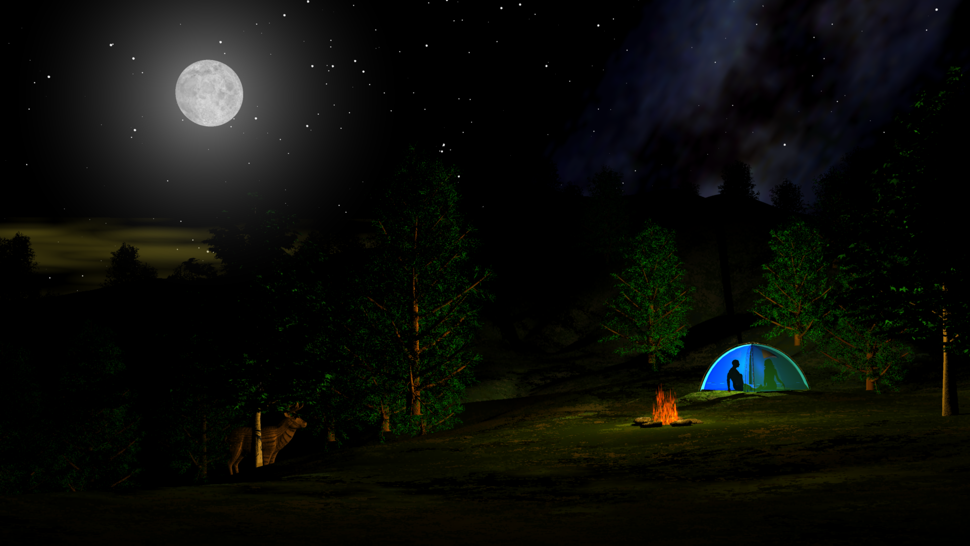 Bravo!  The silhouettes of the figures on the tent are fantastic.  I also really like the lighting of the nebula.  Very subtle.  Also, your moon haze is better than mine..yes   If I could make one suggestion, it looks like some of the stars are landing on the turf in the leftside of the image.  Might be my screen, though.